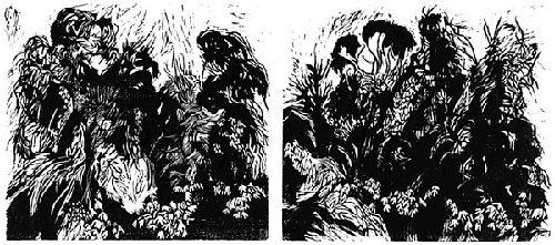 The Kudzu Series evolved while I was working as an artist resident at the Virginia Center for the Creative Arts in Sweet Briar, Virginia. Most of the trees and hills are covered with the pernicious Kudzu vine which gives the landscape an eerie topiary-like quality. From my studio windows, I could see bushes that were choked with the Kudzu vine. Depending on the light and shadows at different times of the day, I could imagine that I was looking at all sorts of animals and birds.