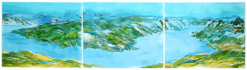 In the summer of 2000, I returned to Newfoundland's Gros Morne National Park. The broad spaces, bare windswept trees and craggy rocks of Gros Morne National Park challenged me. I gathered my material for these works from long hours of on-site drawing, as well as impressions taken from a helicopter ride and several boat trips.